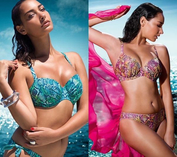 Un estampado de serpiernte negrita en colores de moda con una chispa de plata. Un toque travieso pero una clase pura gracias a sus elegantes cortes. Se presentan en dos colores, soleado rosa: con una mezcla de tonos rosa, naranja y tonalidades berenjenas. Azul ondulado con una combinación de colores en tonos azul claro, azul petróleo y verde lima. Los acentos sutiles en plata cada uno proporcionan un brillo extra.