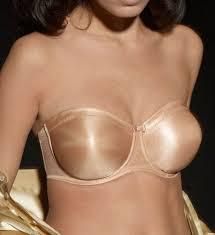 Sobrío y elegante sujetador con aros y sin tirantes, su acabado es totalmente liso, creando la bella forma redondeada típica del Satín, sin aplastar el busto.